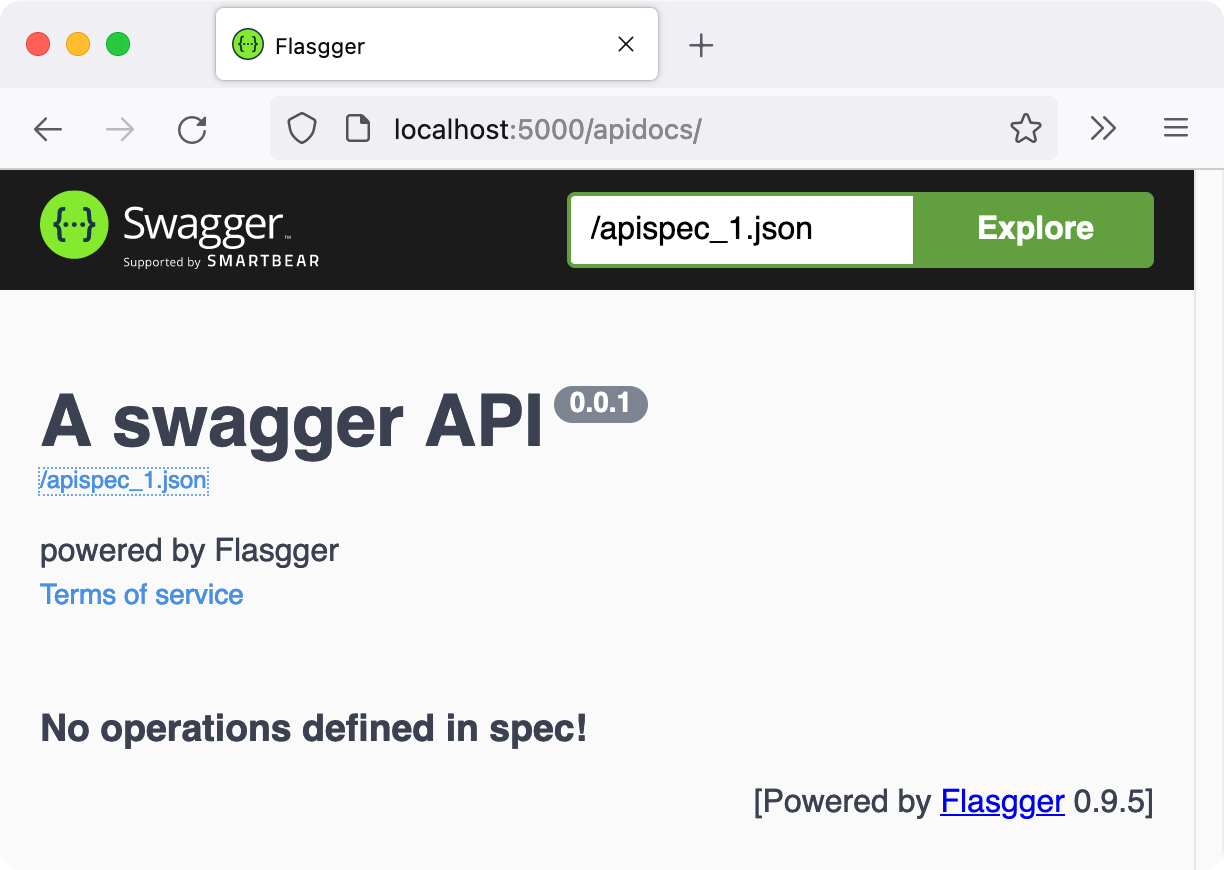 不管使用以上何种方,都要求我们对 Swagger API(或 Open API) 文档的语法有一定的熟悉。而在 API 函数中使用的 docstring 或 @swag_from 只是帮助我们获得了 URL Path 和 HTTP Method。我们最终想要得到的就是那个 http://localhost:5000/apispec_1.json, 这样的话,完全可以自己编辑 apispec_1.json, 只须 Flask 同时启动一个 Swagger UI 来浏览该 apispec。