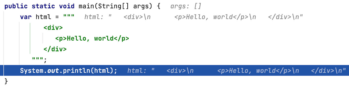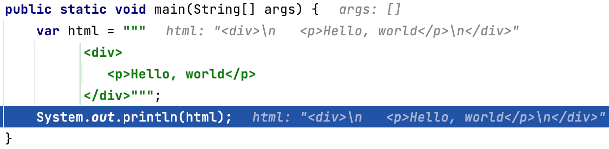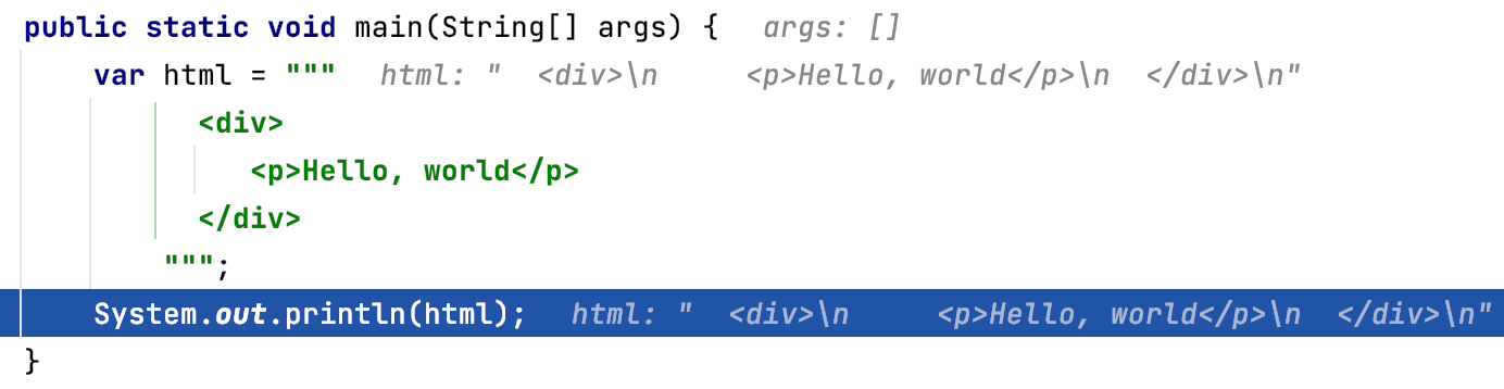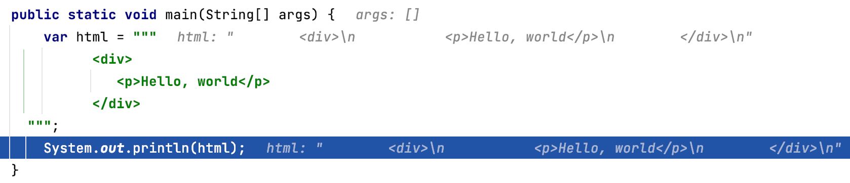 Java 15 的 Text Blocks, 它给我们非常大的便利,但使用方法不复杂,它借鉴了像 Scala, Groovy, 和 Python 的语法风格,即用三个双引号的语法。具体的语法是