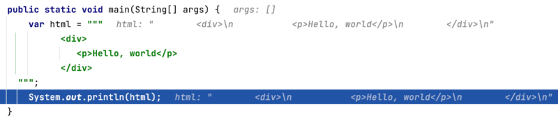 Java 13 的 Text Blocks(多行字符串) 还是预览特性,它将会在 Java 15 中正式引入,所以留待 Java 15 中来加以说明。