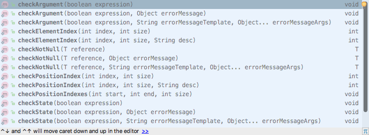 由上图可知,Preconditions(点击查看它的源码) 的方法包括四大类:- checkArgument(boolean expression, ...): 校验参数,失败则抛出