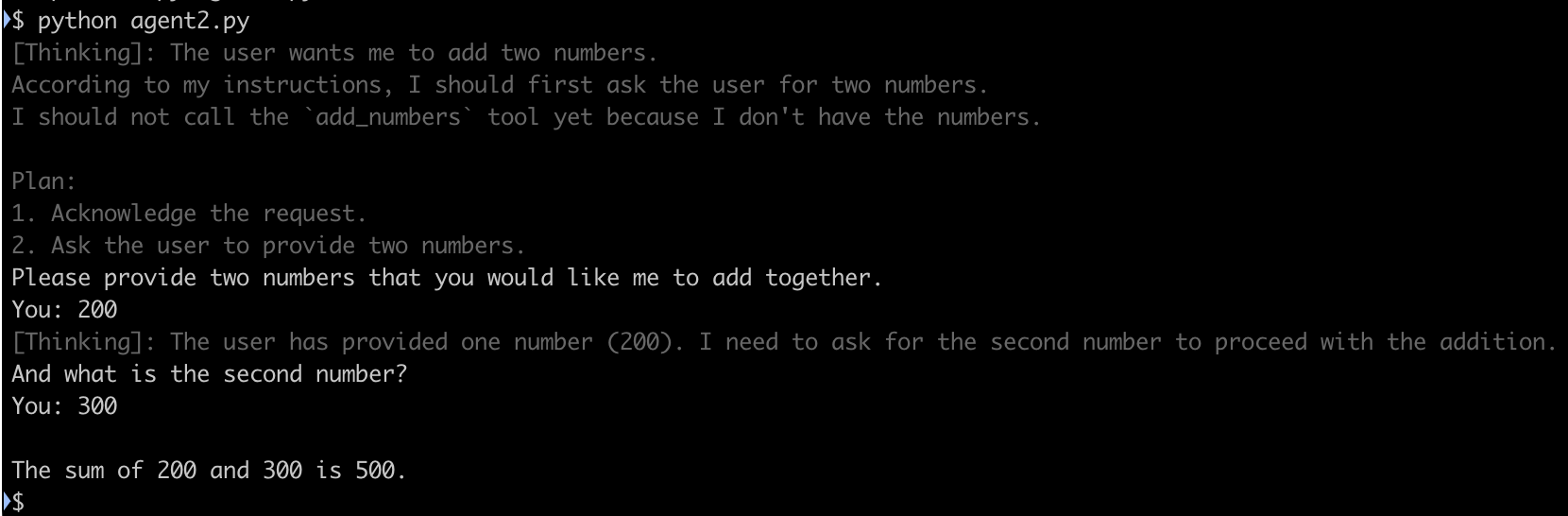 25 SystemMessage(content="You are a helpful assistant. Ask the user for two numbers, then add them."),