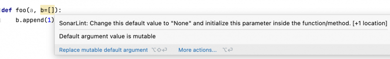 当我在 IntelliJ IDEA 中写类似如下的代码1def foo(a, b=[]): 2 b.append(1) 3 return b