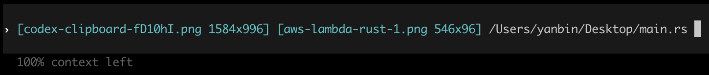 粘贴图片, 尽管你看到是 CLI 交互界面, Codex CLI 还是很方便的粘贴图片到输入行, 有两种方式, 截图或复制图片到剪贴板, 然后在 Codex CLI