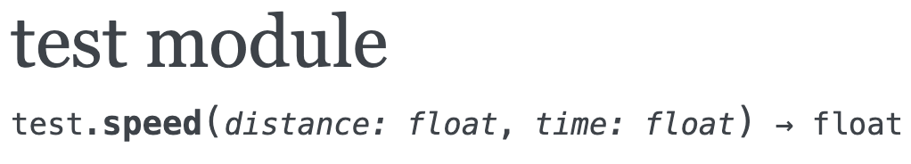 3def speed(distance: Annotated[float, 'feet'], time: Annotated[float, 'seconds'])\