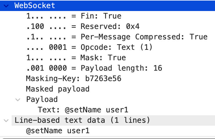 注意,WebSocket 不像 HTTP, 它是一个二进制的协议看下一个客户端向服务端发送