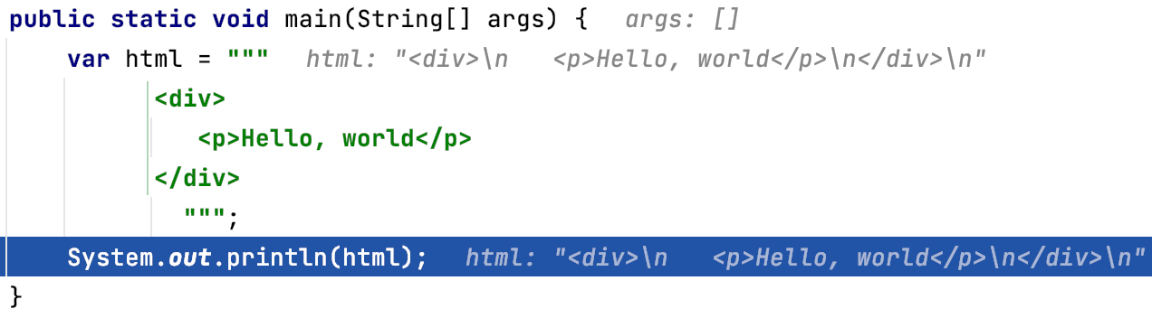 Java 15 的 Text Blocks, 它给我们非常大的便利,但使用方法不复杂,它借鉴了像 Scala, Groovy, 和 Python 的语法风格,即用三个双引号的语法。具体的语法是