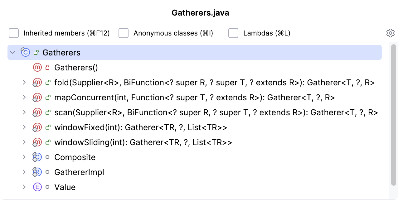 java.util.stream.Gatherer 接口中定义了一些方法, 同时在 java.util.stream.Gatherers 中提供几个实现