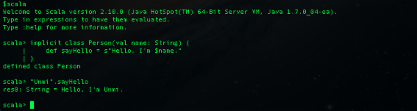 首先要知道 Scala 先前是怎么依据隐式方法进行类型的隐式转换,其次又何谓主构造器呢? 关于 Scala 2.10.0 的 implicit class, 官方的解释在这里 http://docs.scala-lang.org/sips/pending/implicit-classes.html 再多说只能让大家更摸不到头,实例演示是王道: